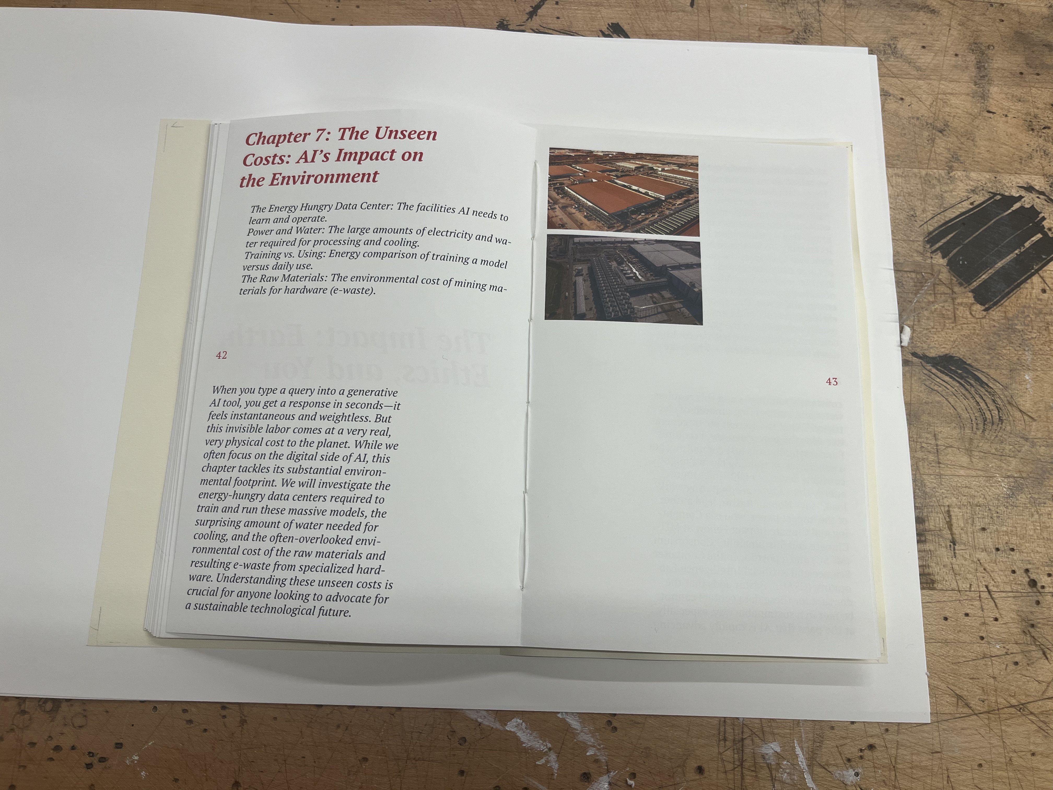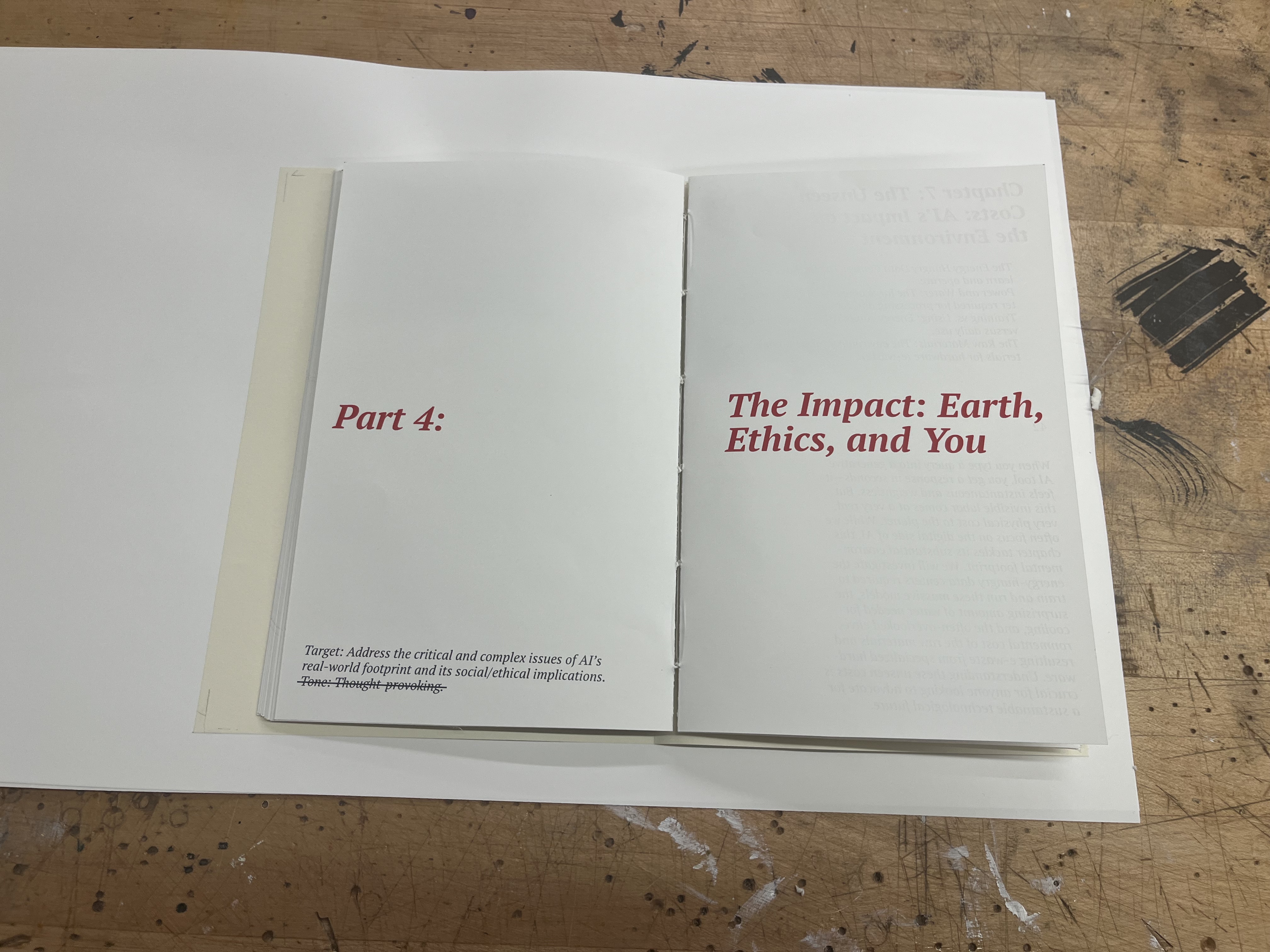 An assignment for my AI class exploring the ways AI and humans collaborate in design. I aimed to create a book that acted as an introduction to AI, I had AI lay out the outline and introduction to each page then went in and researcehd to create the bulk of text within the book. In the labour of creating this book, I am thinking about the degree to which we are seperated from a truly manual world. Even without LLM's like Chat GPT, I still relied solely on large search engines which leverage AI to expose millions of resources in milliseconds. Updated images to come...